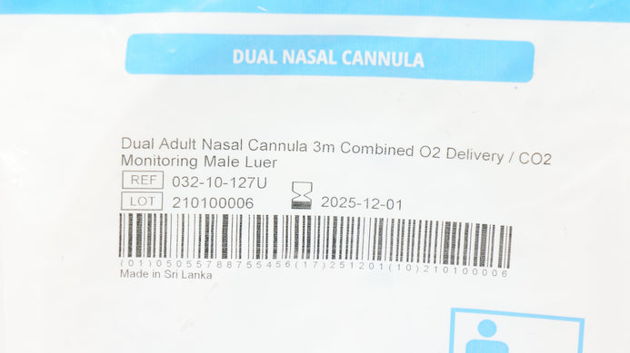 - Flexicare 032-10-127U Dual Nasal Cannula 3m O2Delivery/CO2 Monitoring Male Luer