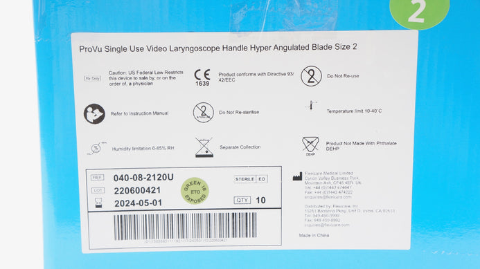 - Flexicare 040-08-2120U ProVu Video Laryngoscope Handle, Size 2 (x) - Box of 8