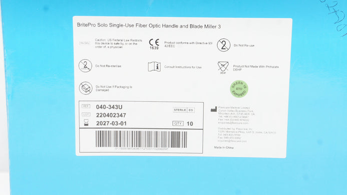 - Flexicare 040-343U BritePro Solo Fiber Optic Laryngoscope Handle - Box of 9