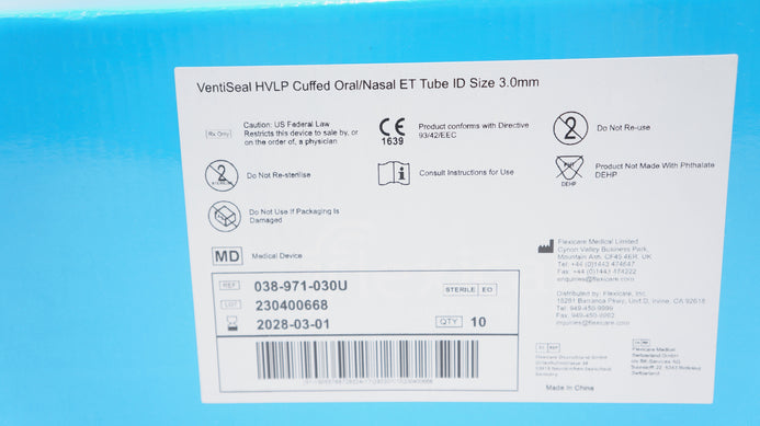 - Flexicare Medical 038-971-030U VentiSeal HVLP Oral/Nasal Tube 3.0mm - Box of 10