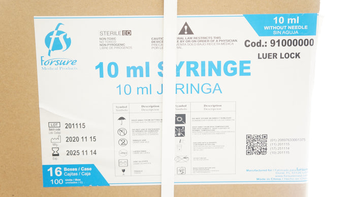 - Forsure Medical Products 91000000 Luer Lock Syringe Jeringa 10mL - Case of 1600