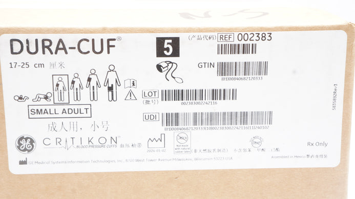 - GE Medical 002383 Critikon Blood Pressure Cuff Small Adult 17-25cm - Box of 5
