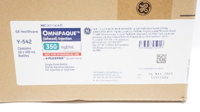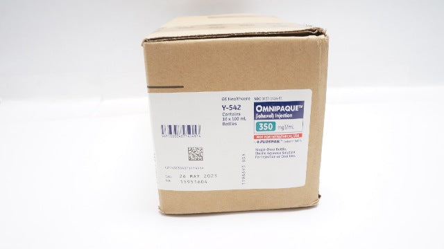 - GE Y-542 Omnipaque 350mgI/mL Injection PlusPak Polymer Bottle 100mL - Case of 10