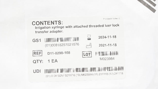 - Genesis D11-0290-108 LipiVage Irrigation Syringe w/Attached Threaded Adapter (x)