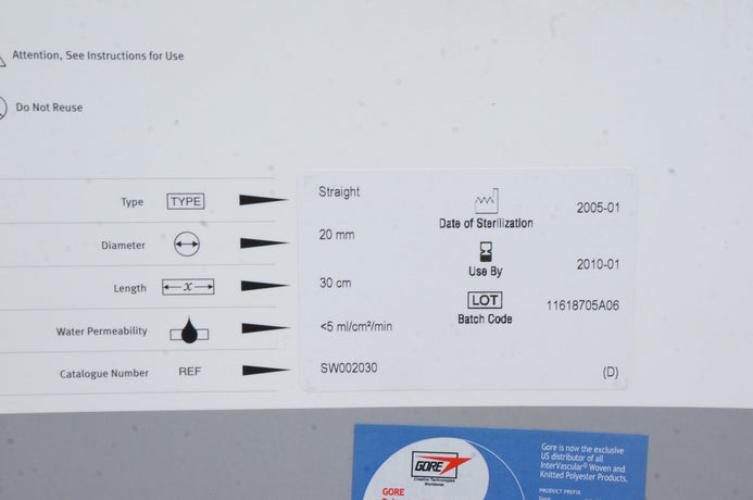 - Gore SW002030 Collage Coated Woven Polyester Vascular Graft 20mm x 30cm (x)