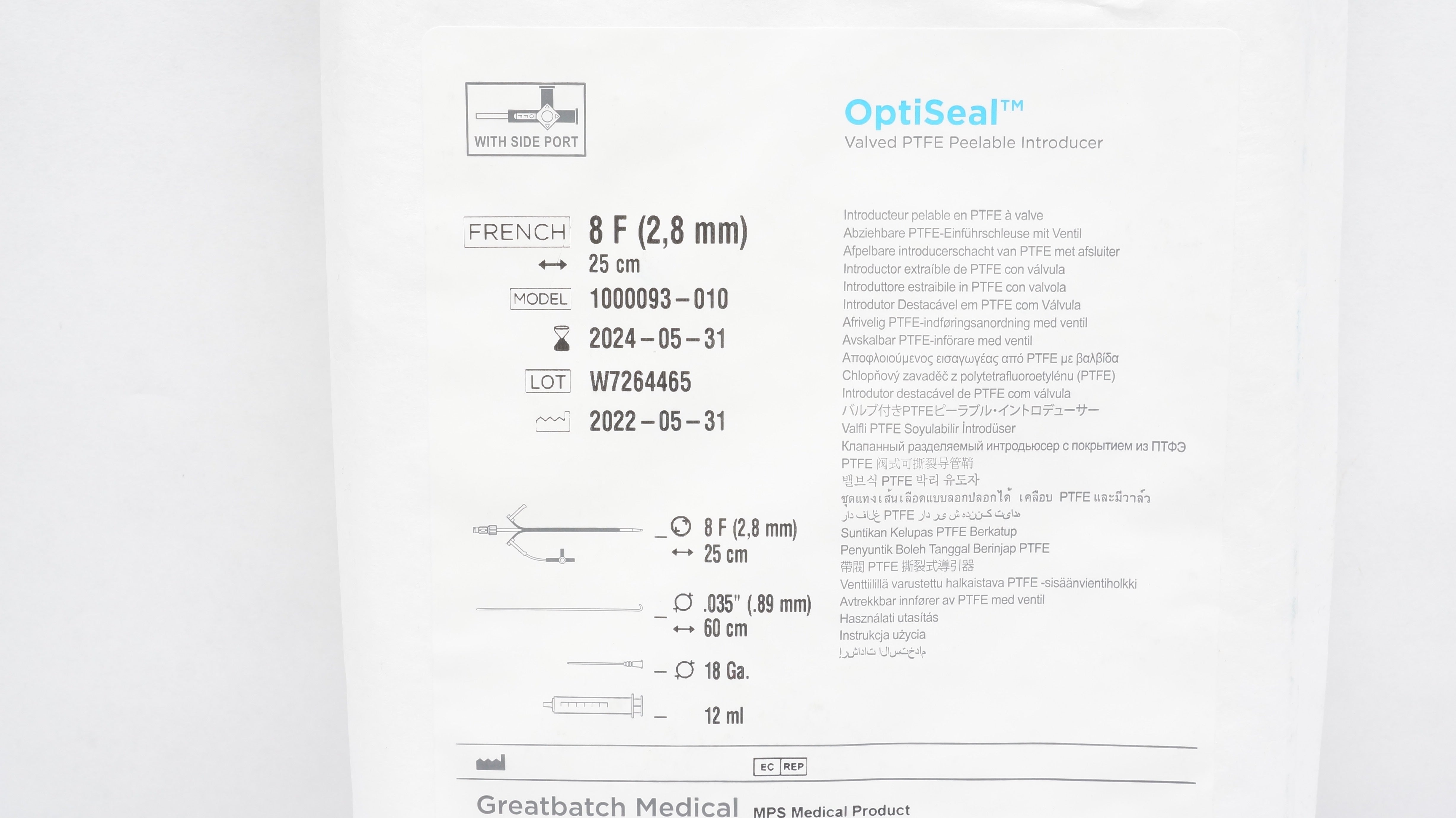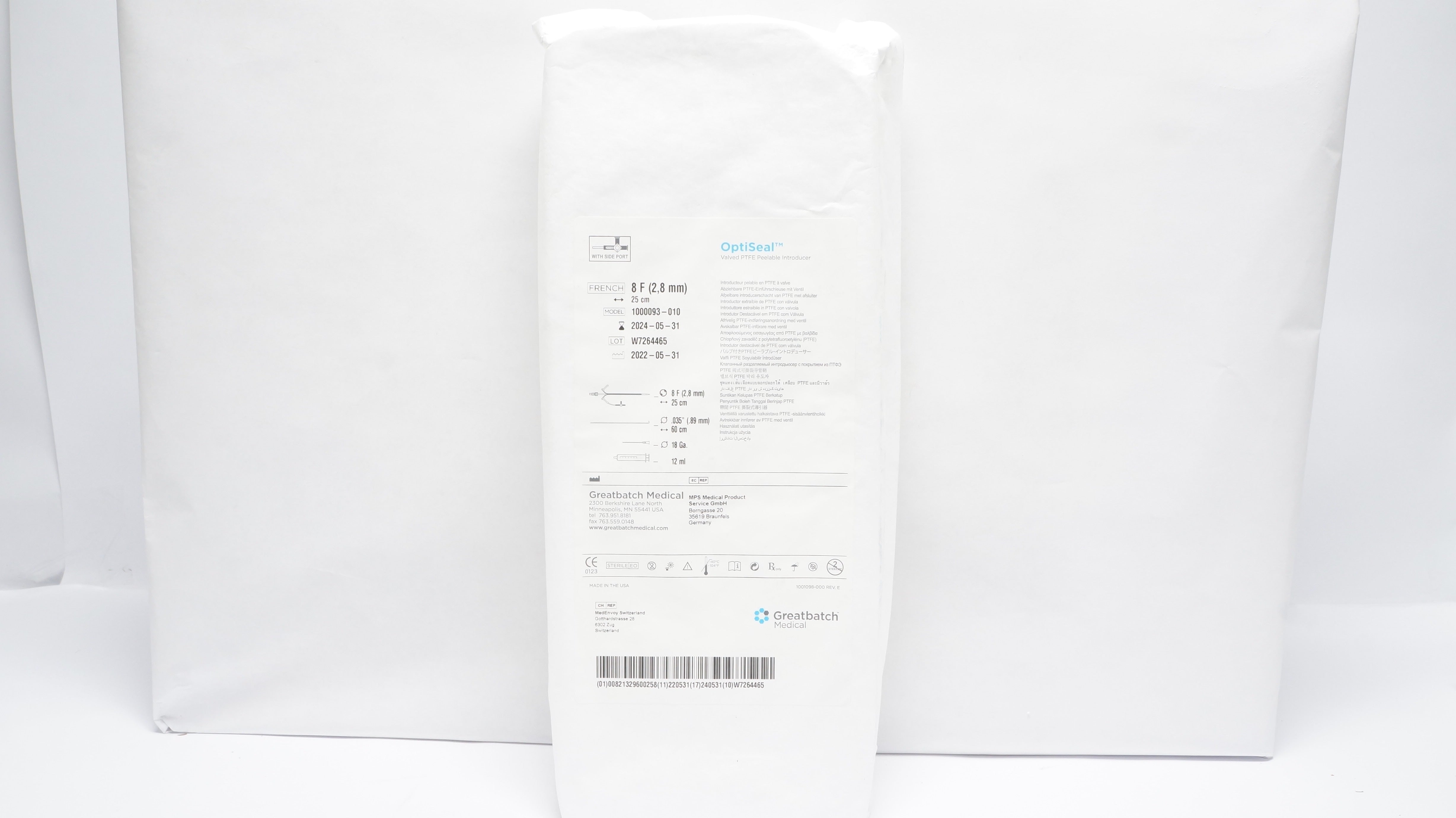 - Greatbatch 1000093-010 OptiSeal Valved PTFE Peelable Introducer 8F x 25cm (x)