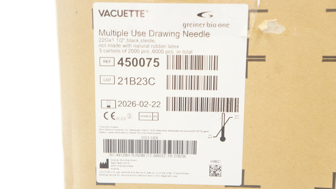 - Greiner Bio-One 450075 Vacuette Drawing Ndle 22G x 1/2inch - Case of 6000