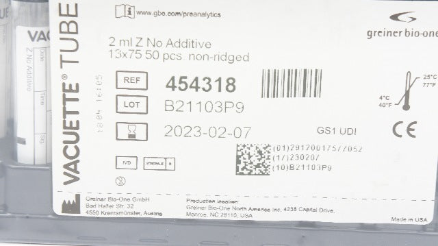 - Greiner Bio-One 454318 VACUETTE Tube 2mL Z No Additive (x) - Pack of 50