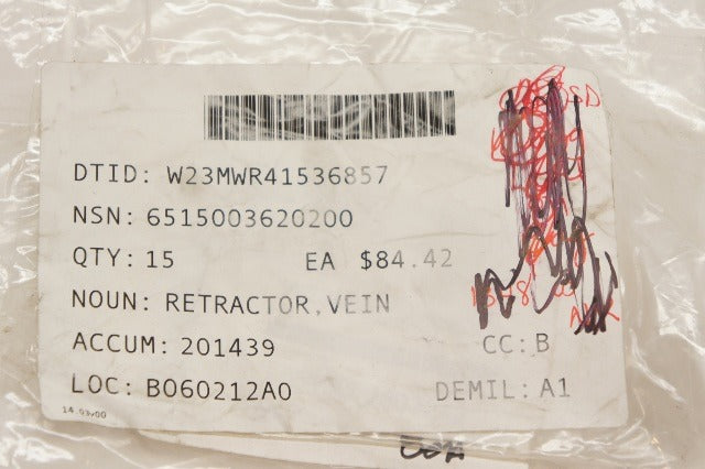 Iii part name assigned by controlling agency: retractor vein cushing design 8.5" corrosion resisting steel