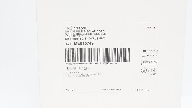 - Gyrus ACMI 131510 Disposable Bipolar Cord Single Use Super Flexible 12.0'-Box of6