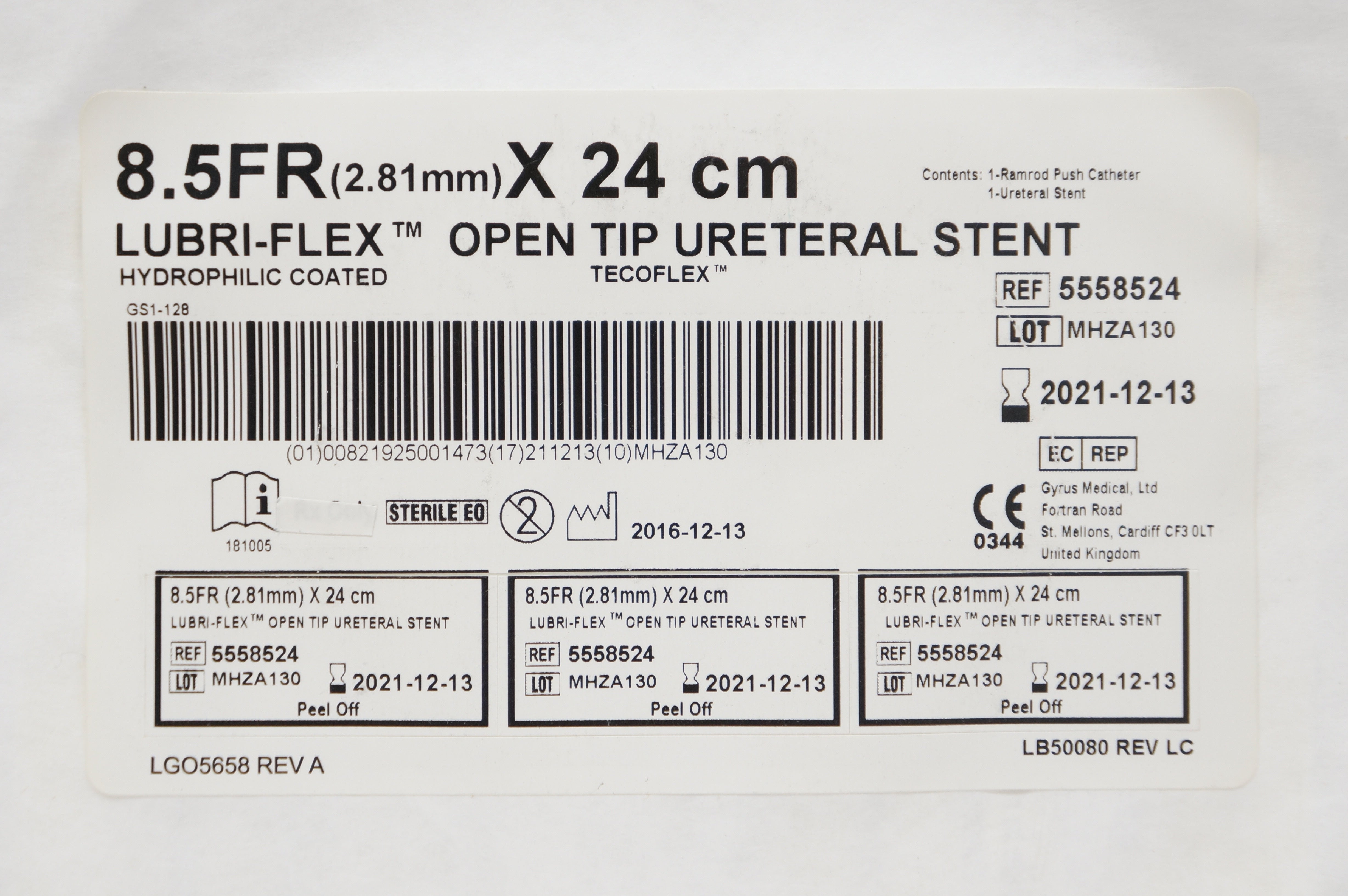 - Gyrus Acmi 5558524 Lubri-Flex Open Tip Ureteral Stnt, 8.5 Fr x 24 cm