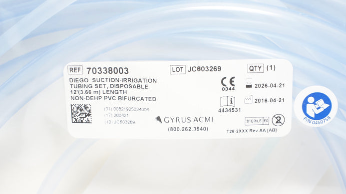 - Gyrus ACMI 70338003 Diego Suction Irrigation Tubing Set, Disposable 12ft.