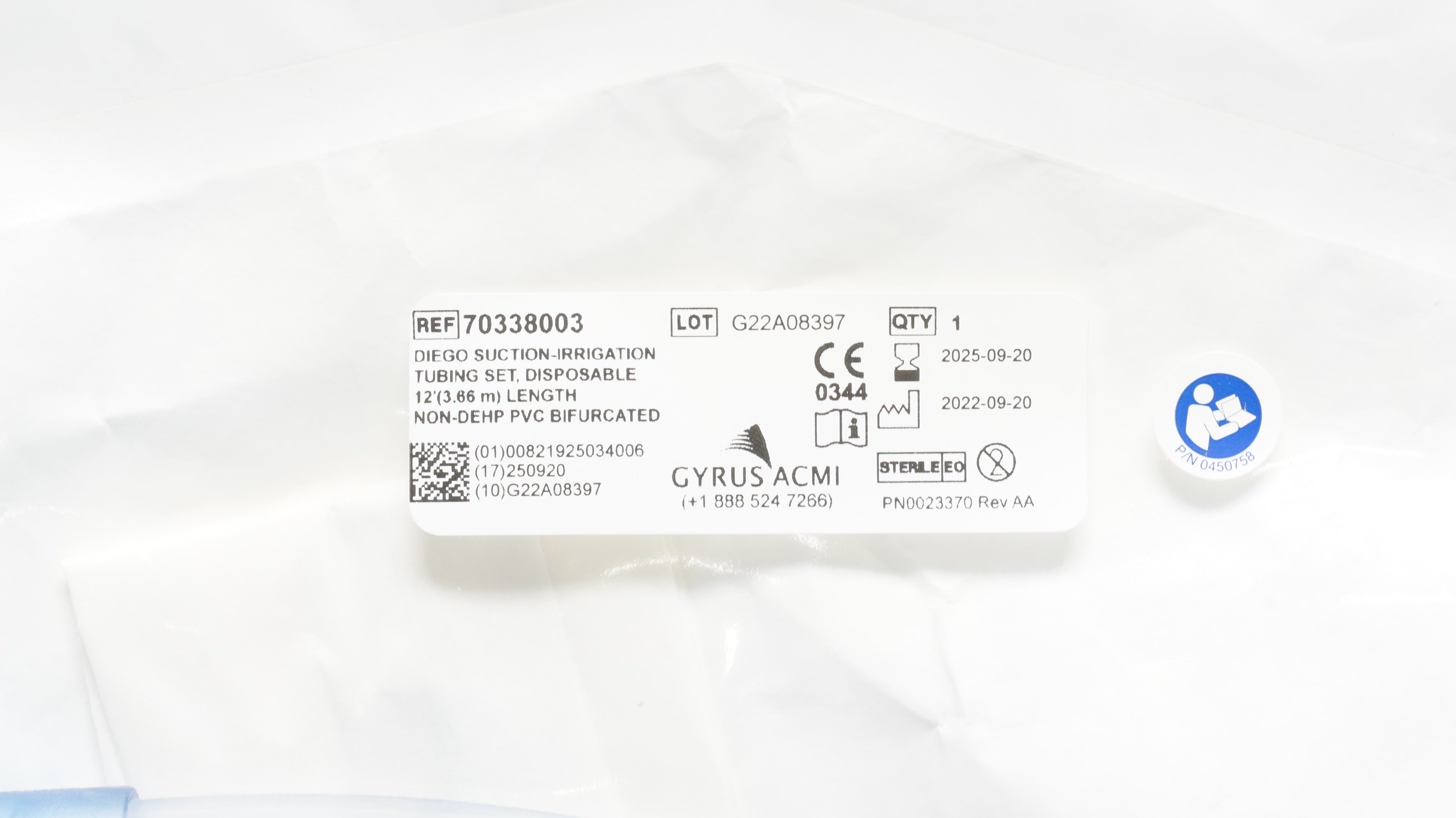 - Gyrus ACMI 70338003 Diego Suction Irrigation Tubing Set, Disposable 12ft. (x)