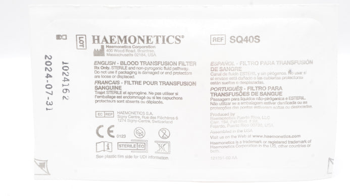 - Haemonetics SQ40S Blood Transfusion Filter (x)