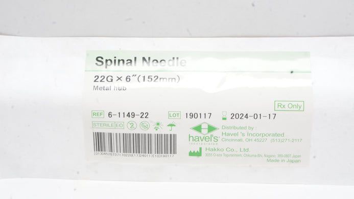 - Hakko 6-1149-22 Spinal Ndle Metal Hub 22Ga x 6inch (x)