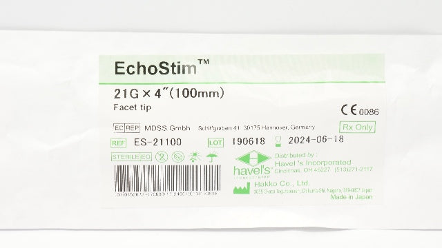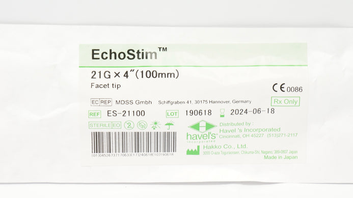 - Hakko ES-21100 Havel's EchoStim Ultrasound Facet Tip Ndle 21G x 4inch