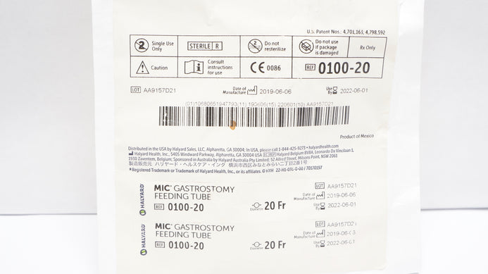 - Halyard 0100-20 MIC Gastrostomy Feeding Tube 20Fr. 7-10ml (x)