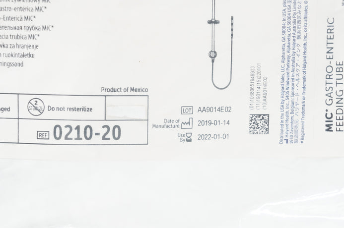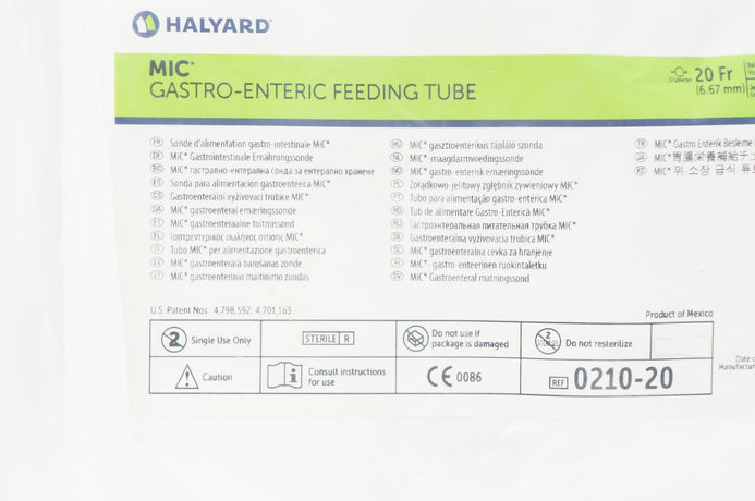 - Halyard 0210-20 Mic Gastro-Enteric Feeding Tube 20Fr