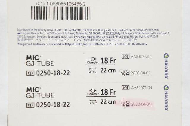 - Halyard 0250-18-22 MIC Gastric-Jejunal Feeding Tube Kit 18Fr x 22cm 7-10ml (x)
