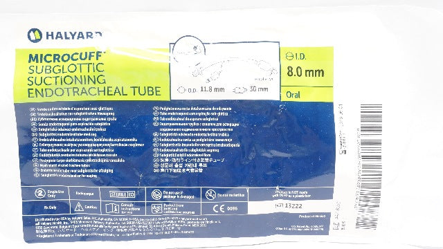 - Halyard 13222 Microcuff Subglottic Suctioning Endotracheal Tube 8.0mm (x)