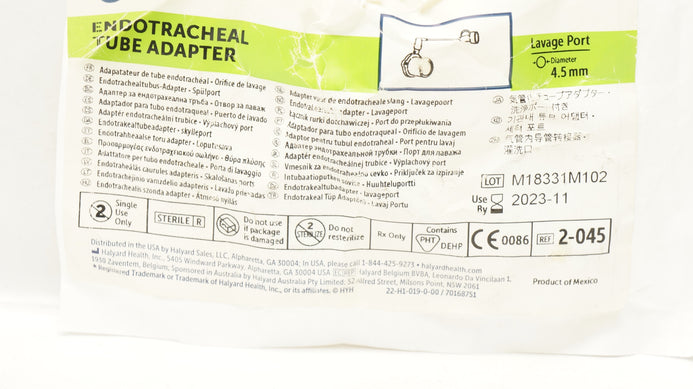 Halyard 2-045 Endotracheal Tube Adapter, Lavage Port 4.5mm