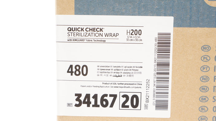 - Halyard 34167(20) Quick Check Sterilization Wrap H200 12In x 12In - Box of 480