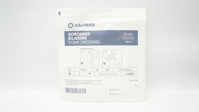- Halyard 50086 Bordered Silicone Foam Dressing 6In x 6In Square