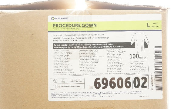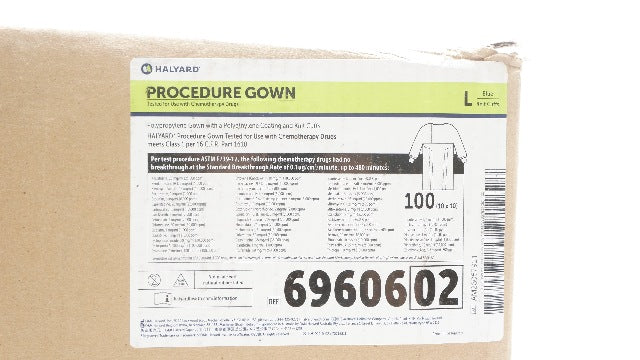 - Halyard 6960602 Procedure Gown, Blue, Knit Cuffs, Size Large - Pack of 100