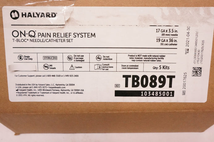 - Halyard TB089T ON-Q Pain Relief System T-Bloc Ndle/Cath. Set - Box of 5