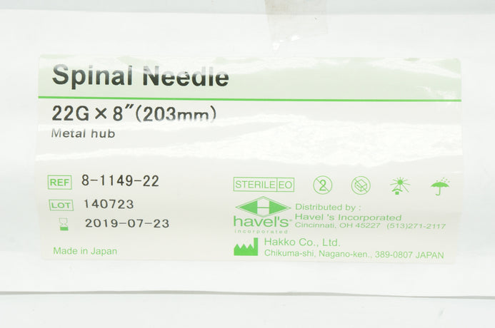 - Havel's 8-1149-22 Hakko Spinal Ndle. Metal Hub, 22G x 8inch
