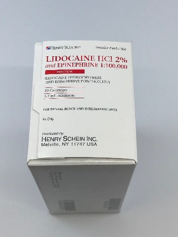 - Henry Schein 465-1205 Lidocaine HCl 2% Epinephrine 1:100,000 ~ Box of 50