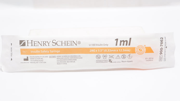 - Henry Schein 900-7662 Insulin Safety Syringe, 1ml, 29G x 1/2inch