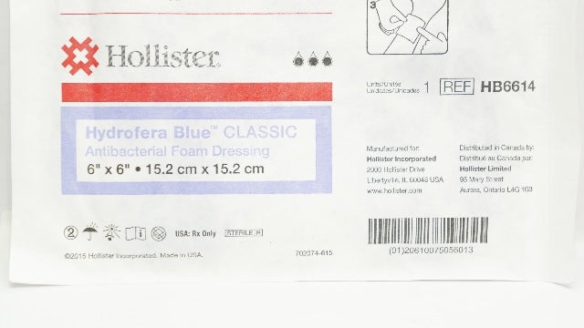 - Hollister HB6614 Hydrofera Blue Classic Antibacterial Foam Dressing 6 x 6inch