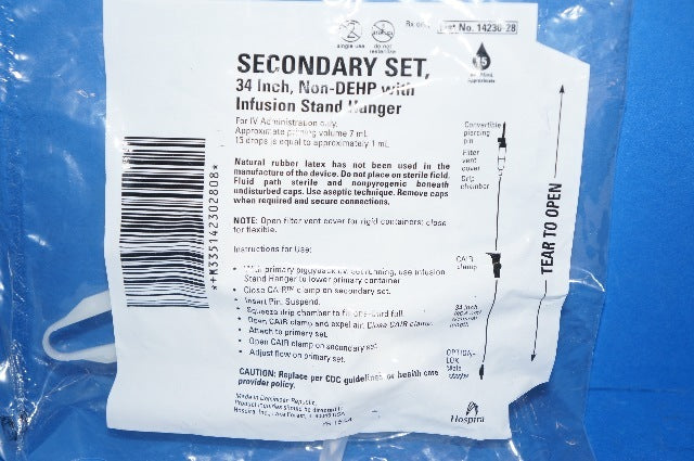 Hospira 14230-28 Secondary Set, 34", Non-DEHP Infusion Stand Hanger 15mL