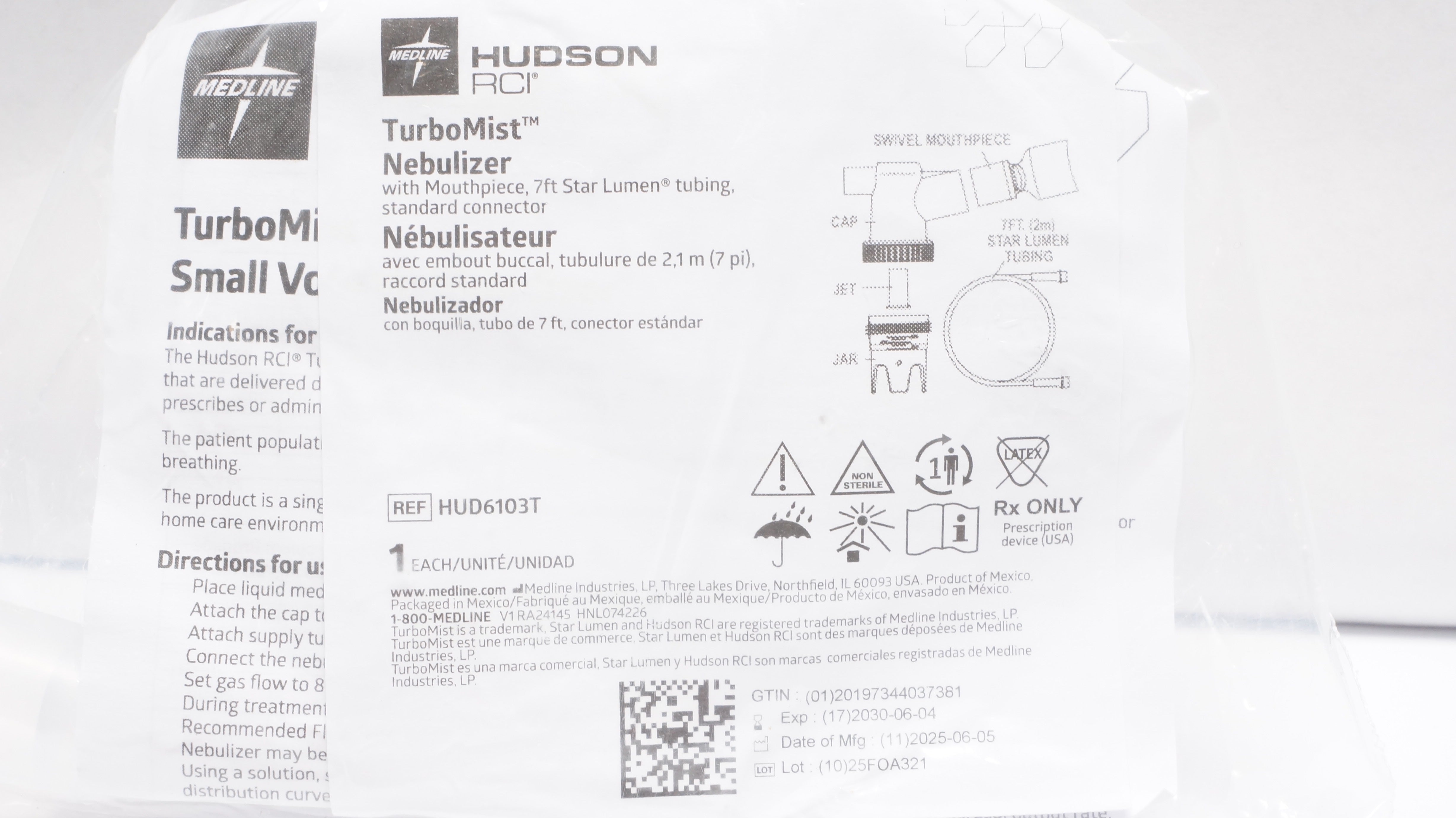 - Hudson HUD6103T TurboMist Nebulizer W/Mouthpiece,7Ft Star Lumen Tubing,Connector