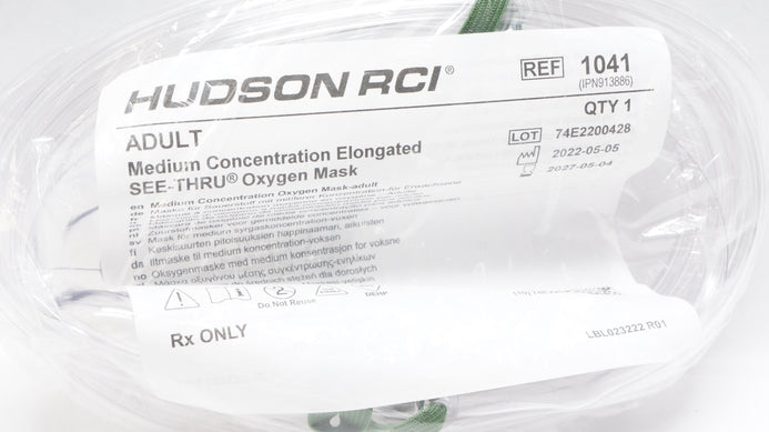 - Hudson RCI 1041 Adult Medium Concentration Elongated See-Thru Oxygen Mask