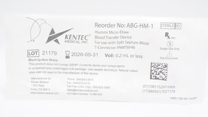 - Hummingbird ABG-HM-1 Hummi Micro-Draw Blood Transfer Device