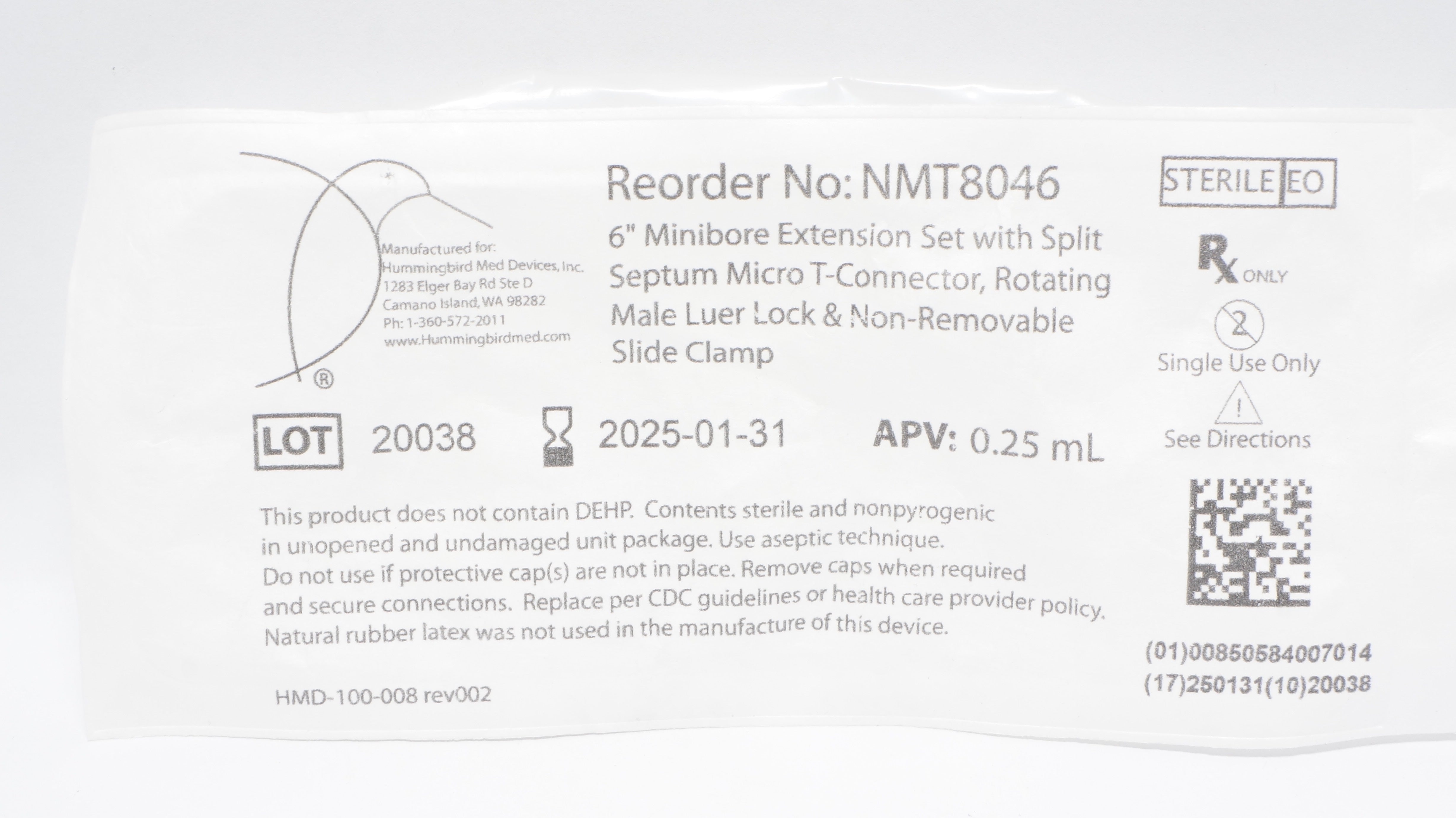 - Hummingbird Med Devices NMT8046 Minibore Extension Set 6inch (x)
