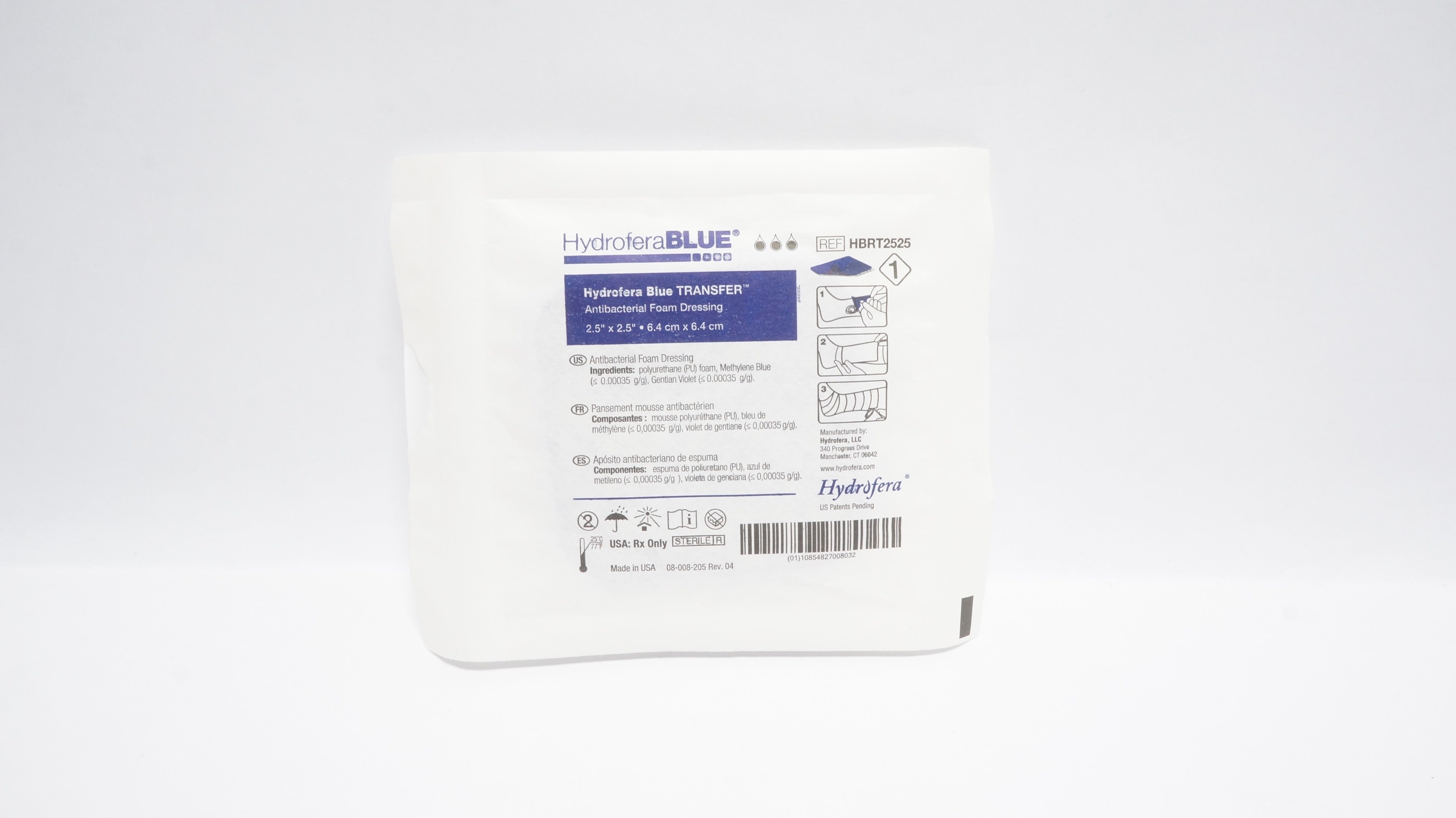 - Hydrofera HBRT2525 Blue Ready Antibacterial Foam Dressing 2.5inch x 2.5inch