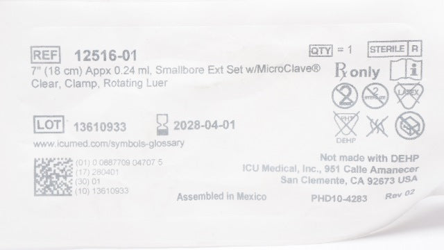 - ICU Medical 12516-01 Smallbore Extension Set 7inch x 0.24mL