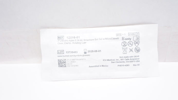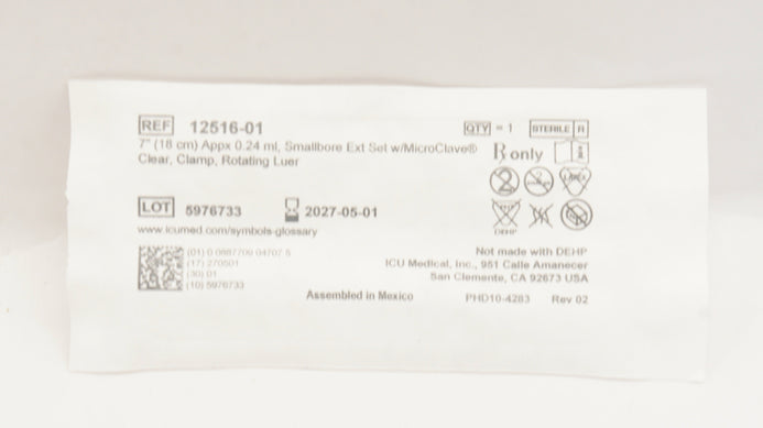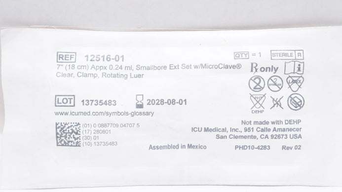 - ICU Medical 12516-01 Smallbore Extension Set 7inch x 0.24ml (Appx.)