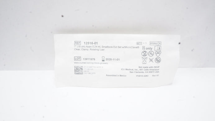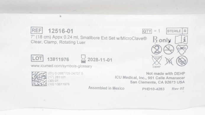 - ICU Medical 12516-01 Smallbore Extension Set 7inch x 0.24mL Appx.