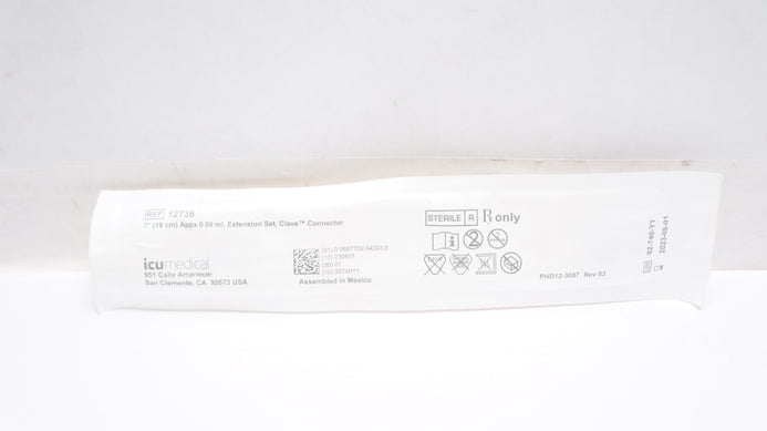 - ICU Medical 12738 Non-DEHP Extension Set Clave Connector 7inch x 0.69ml (x)