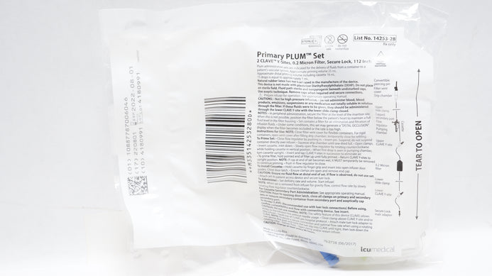 - ICU Medical 14253-28 Primary PLum Set 2 Clave Y-Sites 112inch(x)
