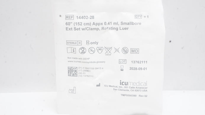 - ICU Medical 14402-28 Smallbore Extension Set W/Clamp Rotating Luer 60inchx0.41mL