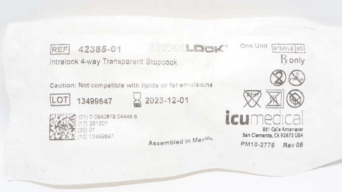 - ICU Medical 42385-01 IntraLock 4-Way Transparent Stopcock
