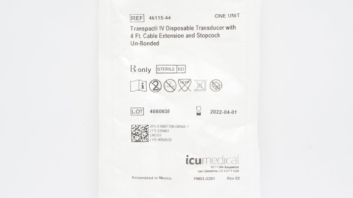 - ICU Medical 46115-44 Transpac IV Disposable Transducer w/4Ft. Cable Extension(x)