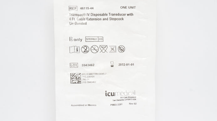 - ICU Medical 46115-44 Transpac IV Disposable Transducer w/4Ft. Cable Extension(x)