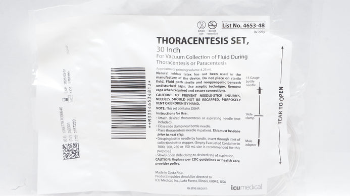 - ICU Medical 4653-48 Thoracentesis Set 30inch Approx. Priming Volume 4.25mL