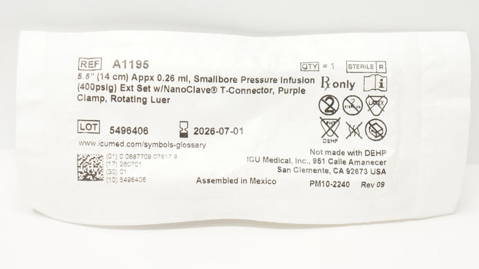 - ICU Medical A1195 5.5inch Appx 0.26ml, Smalbore Pressure Infusion Extension Set